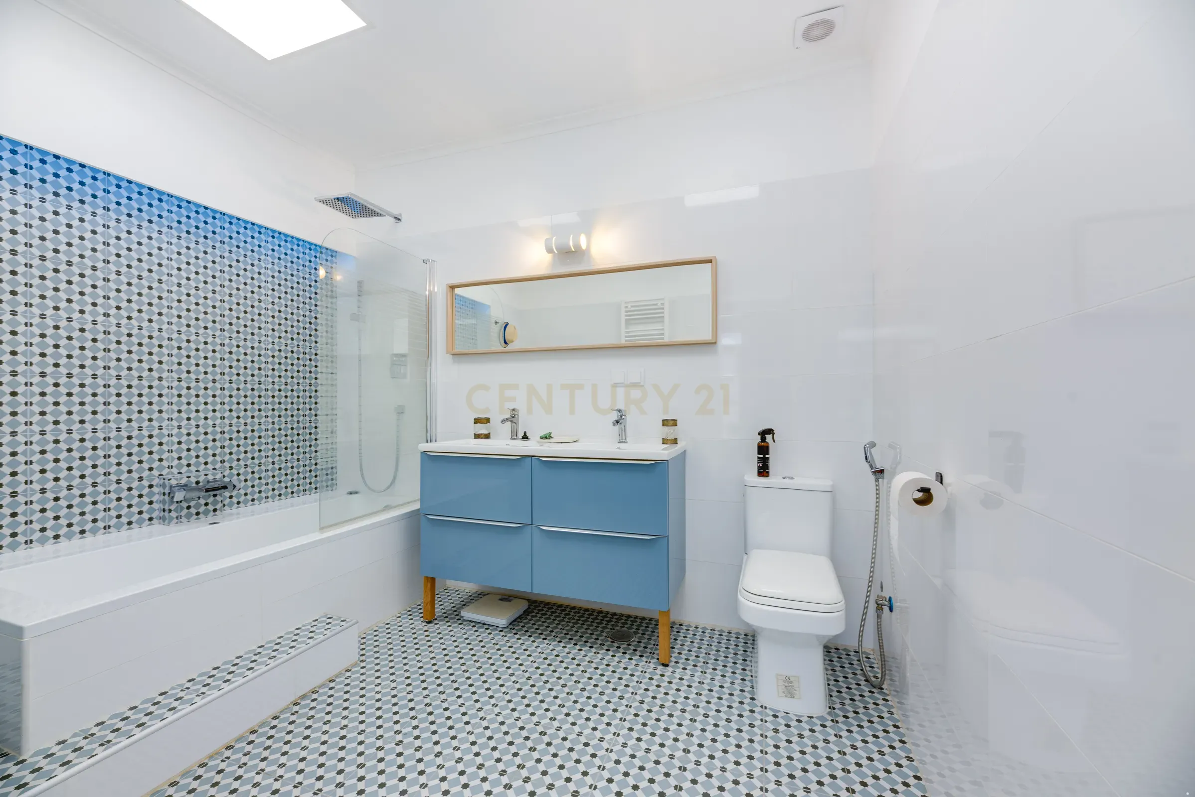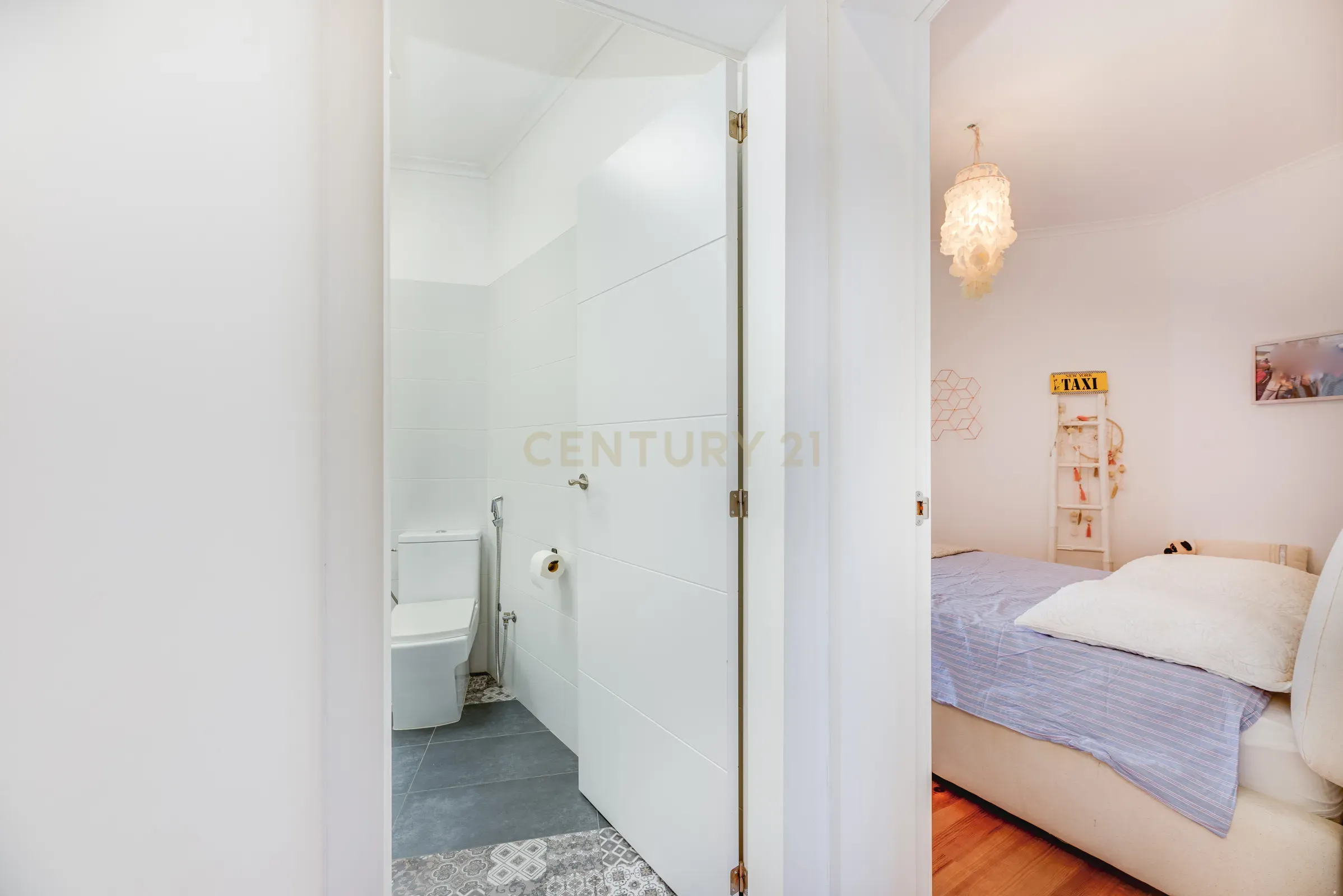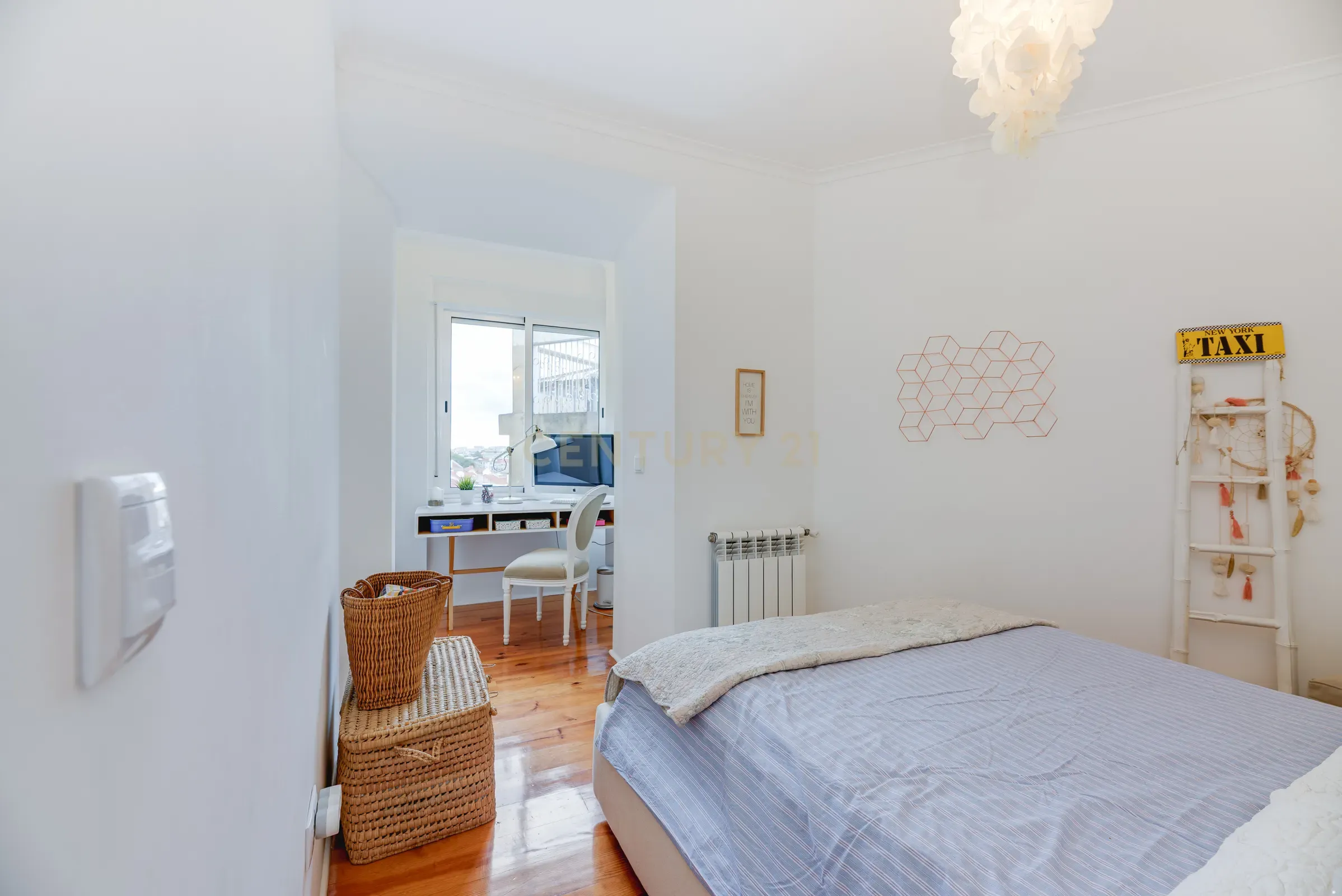 It is in like-new condition, comprising two bathrooms and three bedrooms, one of them en-suite, a spacious living room and a kitchen that comes fully equipped, and also features central heating.